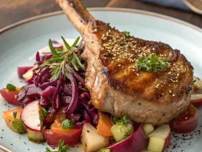 Côte de porc au chou rouge et pommes : un délice de terroir Découvrez une recette...