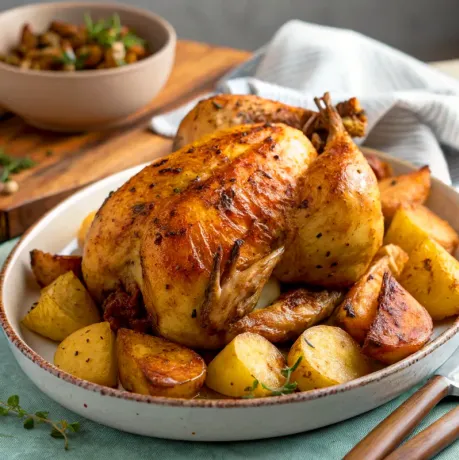 Le poulet rôti présente de nombreux avantages. C'est une recette relativement simple à réaliser, qui ne demande pas beaucoup de temps de préparation. De plus, il s'adapte parfaitement à la saison, car vous pouvez varier les herbes et les légumes d'accompagnement en fonction de ce que vous trouverez sur les marchés. En été, optez pour des herbes fraîches comme le thym, le romarin et la sarriette, et accompagnez votre poulet de légumes méditerranéens. En hiver, choisissez des saveurs plus robustes comme le laurier, l'ail, et proposez un accompagnement de légumes racines rôtis.