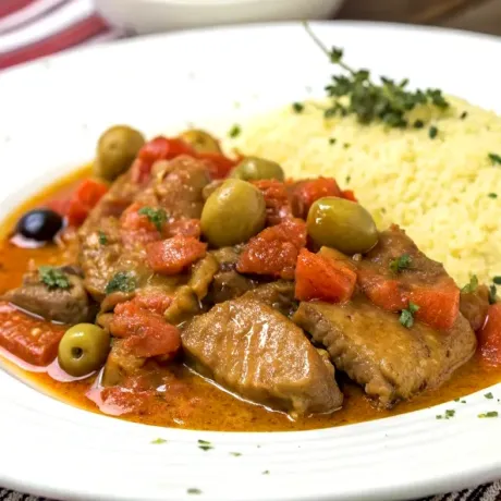 Pour réaliser ce plat, vous aurez besoin de quelques ingrédients simples mais essentiels. La base de la sauce est composée de tomates fraîches, de vin blanc sec, et bien sûr, d'olives vertes qui apportent une touche de caractère inimitable. Le veau, quant à lui, est coupé en morceaux, ce qui lui permet de bien s'imprégner des saveurs. L'accompagnement traditionnel est la semoule, qui absorbe parfaitement la sauce, ou des pommes de terre rôties, pour une option plus rustique.